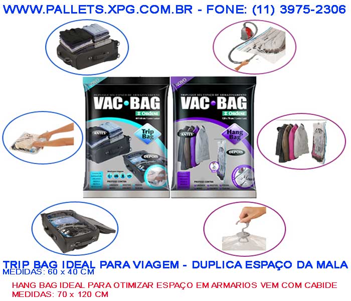 VAC BAG SACO PARA EMBALAR ROUPAS A VACUO TRIP BAG E HANG BAG PARA OTIMIZAR ESPAÇOS EM ARMARIOS E MALAS DE VIAGEM